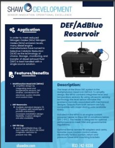For additional information about our DEF reservoir systems, see the table below, or contact Shaw directly.